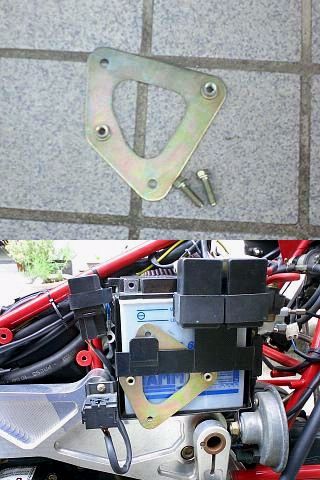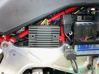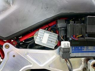 充電系統の重要部品であるレギュレータももちろんDUCATIと同じ物がついていますが、このDUCATIのレギュレータはパンクしやすい上に低回転ではバッテリが充電されないと言う噂でDUCATIユーザーの間でも国産(日本電装?)のレギュレータに交換する人が多いとの事でした。