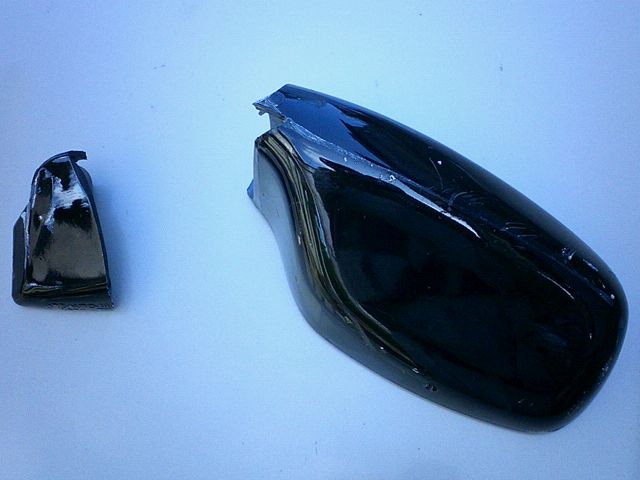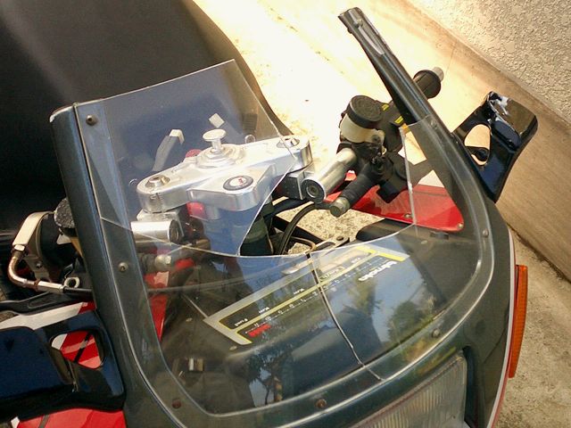 ガードレールの直撃を受けて割れてしまったスクリーン・・・これが割れたって事は、当然スクリーン左のカウルも結構ひびは入っちゃってます。